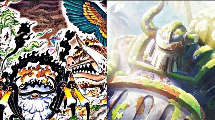 Plot terpenting yang kemungkinan besar akan menjadi pusat perhatian di One Piece chapter 1117 adalah pertarungan Lima Tetua melawan Raksasa Besi atau Iron Giant.