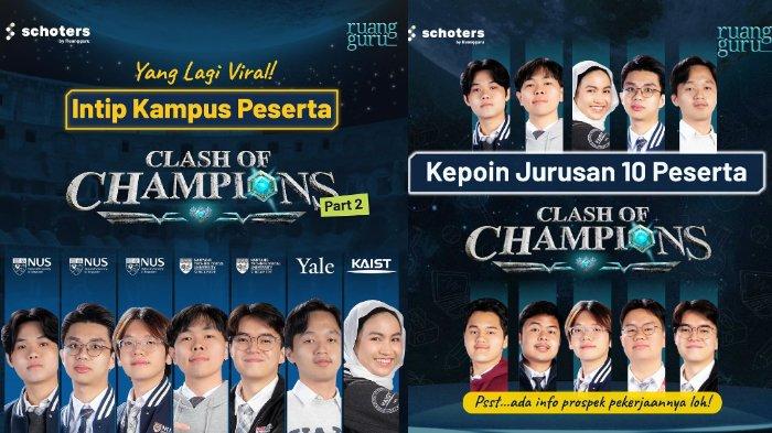 Ruangguru Clash of Champions merupakan game show yang mempertemukan 50 mahasiswa jenius dari belasan universitas ternama di Indonesia maupun luar negeri ini.