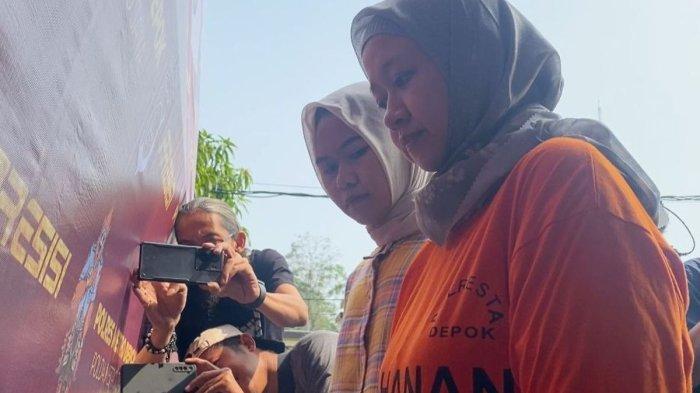 Berdasarkan pantauan Kompas.com, Meita keluar dari salah satu ruangan lalu digiring ke area jumpa pers di halaman Mapolres Metro Depok.