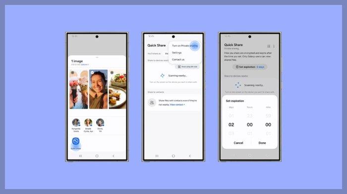 Per 1 Agustus 2024, Samsung resmi menambahkan dua fitur keamanan baru ke ponsel pintar dan tablet Galaxy. Kedua fitur baru tersebut yakni Quick Share Private Sharing dan Samsung Cloud Enhanced Data Protection.