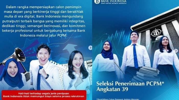 Pendaftaran lowongan kerja Bank Indonesia melalui Seleksi Penerimaan Pendidikan Calon Pegawai Asisten Manajer (PCPM) Angkatan 39.