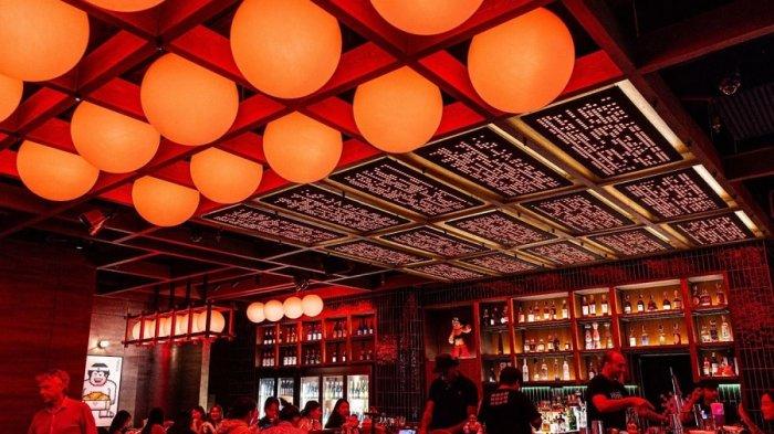 Saat matahari terbenam, interior bergaya modern-Jepang dengan sentuhan nostalgia mengubah restoran ini menjadi tempat sempurna bagi para pecinta kehidupan malam.