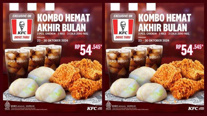 Penawaran tersebut berupa setiap pembelian Kombo Hemat yang terdiri dari 3 ayam + 3 nasi + 3 coca cola zero sugar hanya dikenakan biaya Rp 54.545.