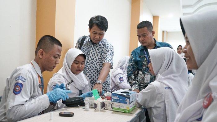 Selain mendapatkan ilmu secara teori, para peserta juga diajak pelatihan praktik langsung dengan menggunakan alat screening kesehatan.
