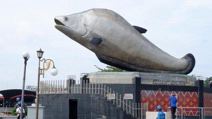 TRIBUNNEWSWIKI.COM - Tugu Ikan Belido merupakan salah atu ikon baru kebanggan warga dan Kota Palembang.